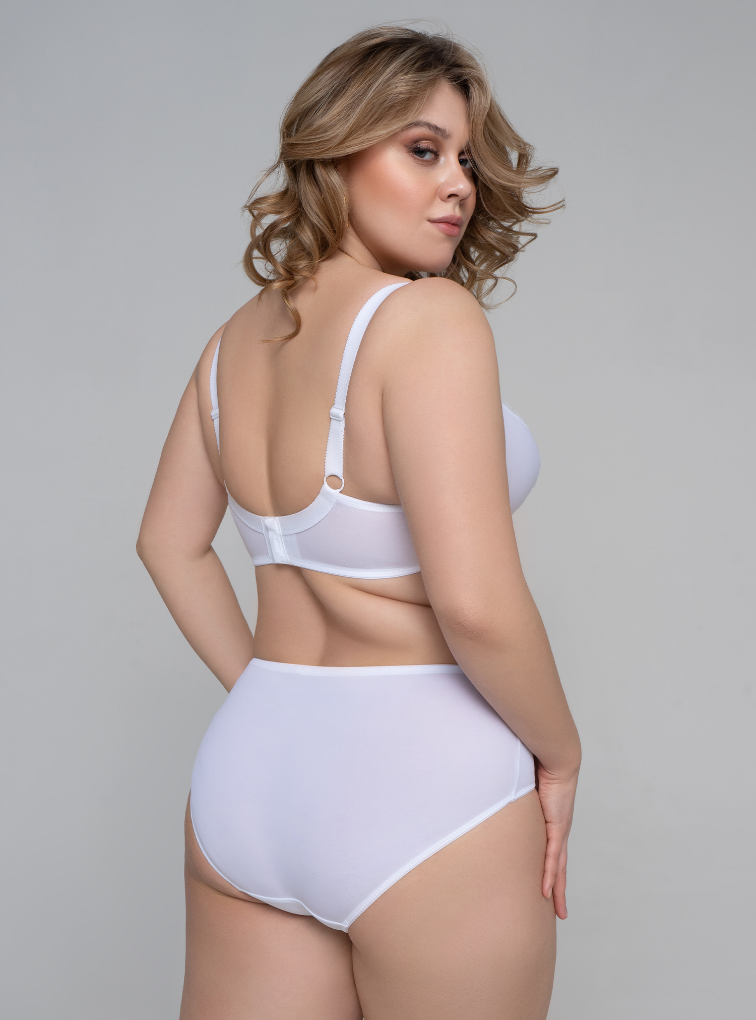 • Бюстгальтер с закрытой мягкой чашкой на каркасах и высокой центральной деталью надежно фиксирует грудь