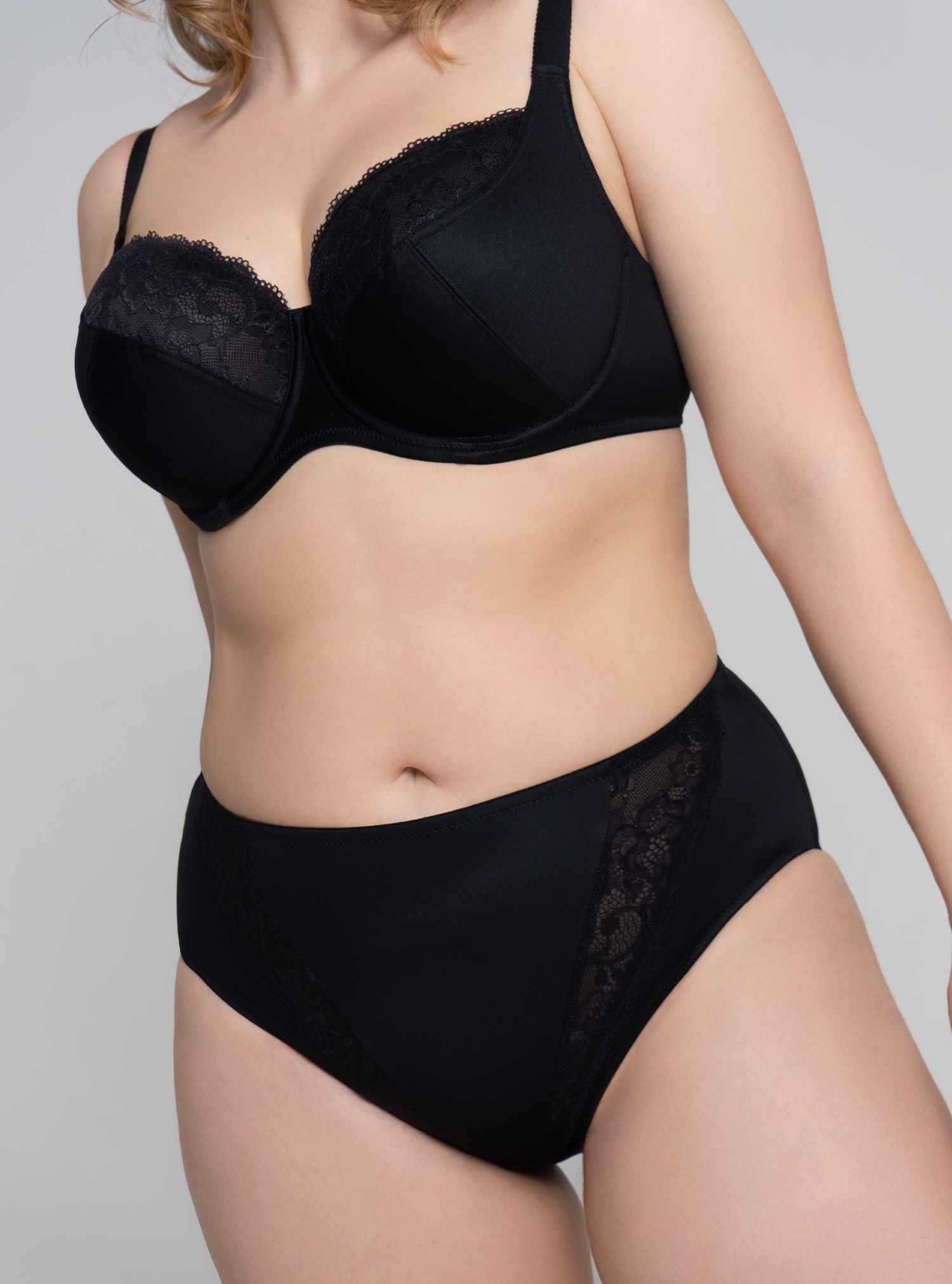 • Т-образный крой чашки с диагональным швом позволяет вместить грудь большого объема